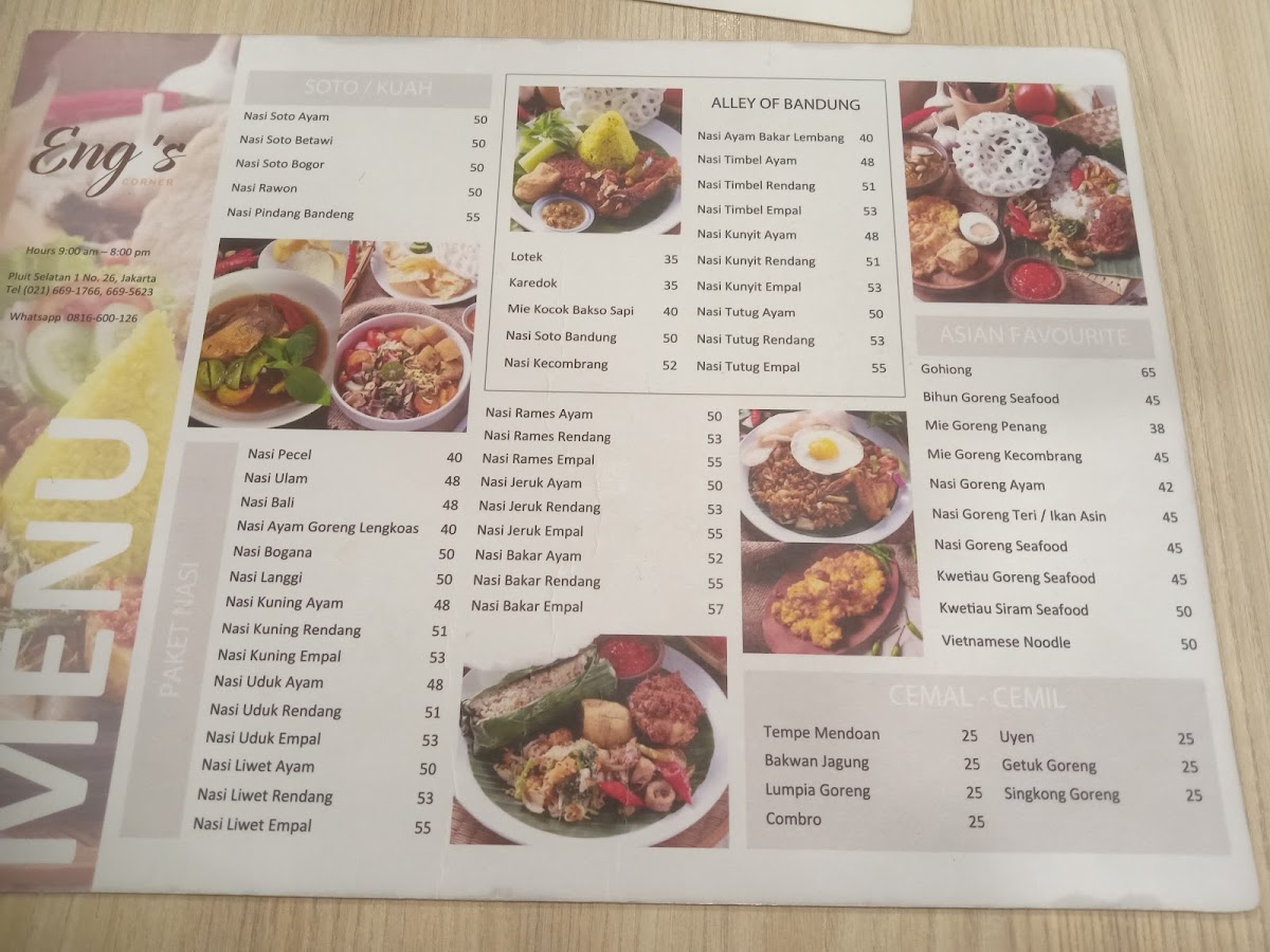 Welcome to Eng's Corner, a hidden gem located in the heart of Pluit, Jakarta. This cozy restaurant offers a diverse menu showcasing the best of Indonesian cuisine. Renowned for its friendly staff and inviting ambiance, Eng's Corner is a favorite among locals and visitors alike.
